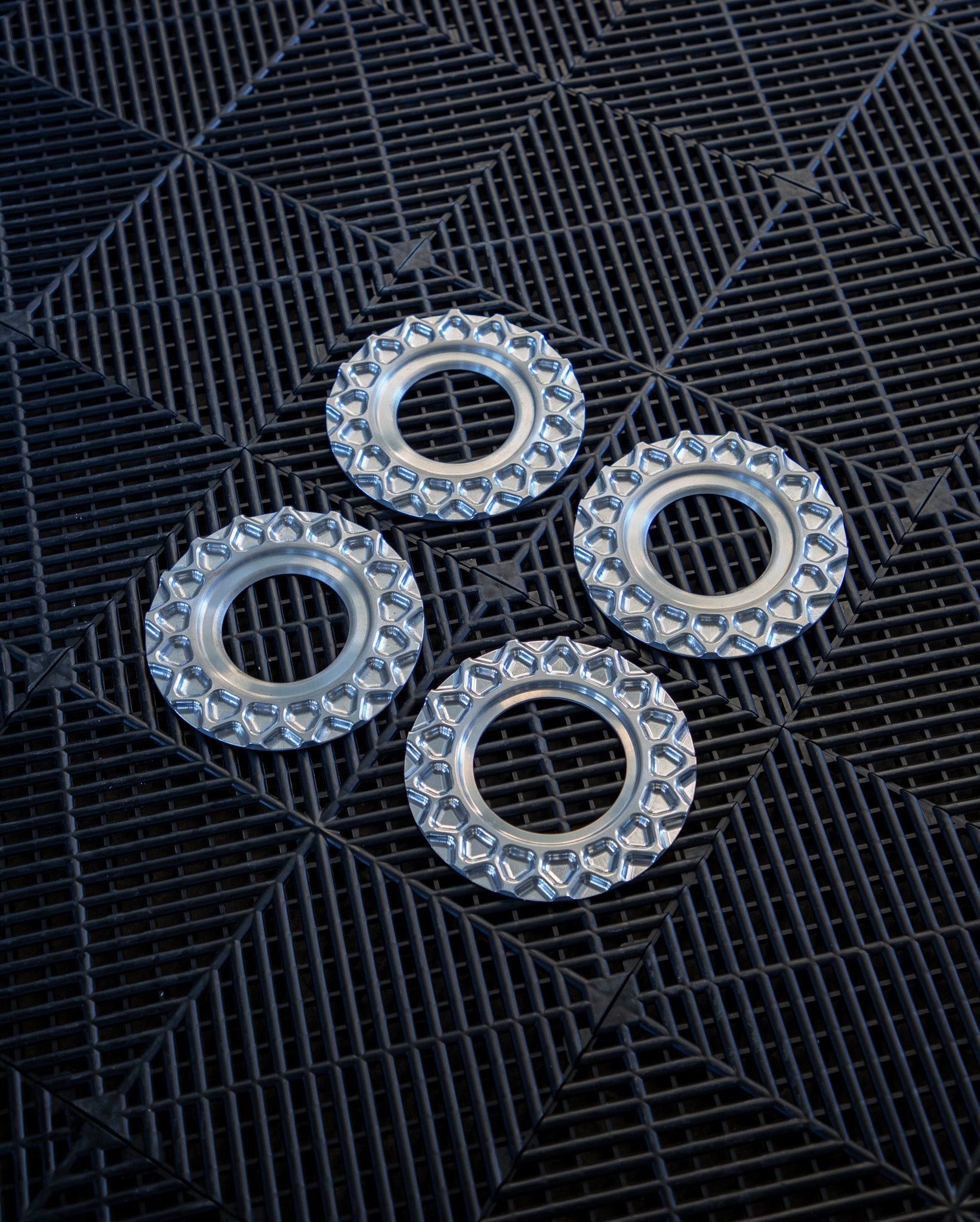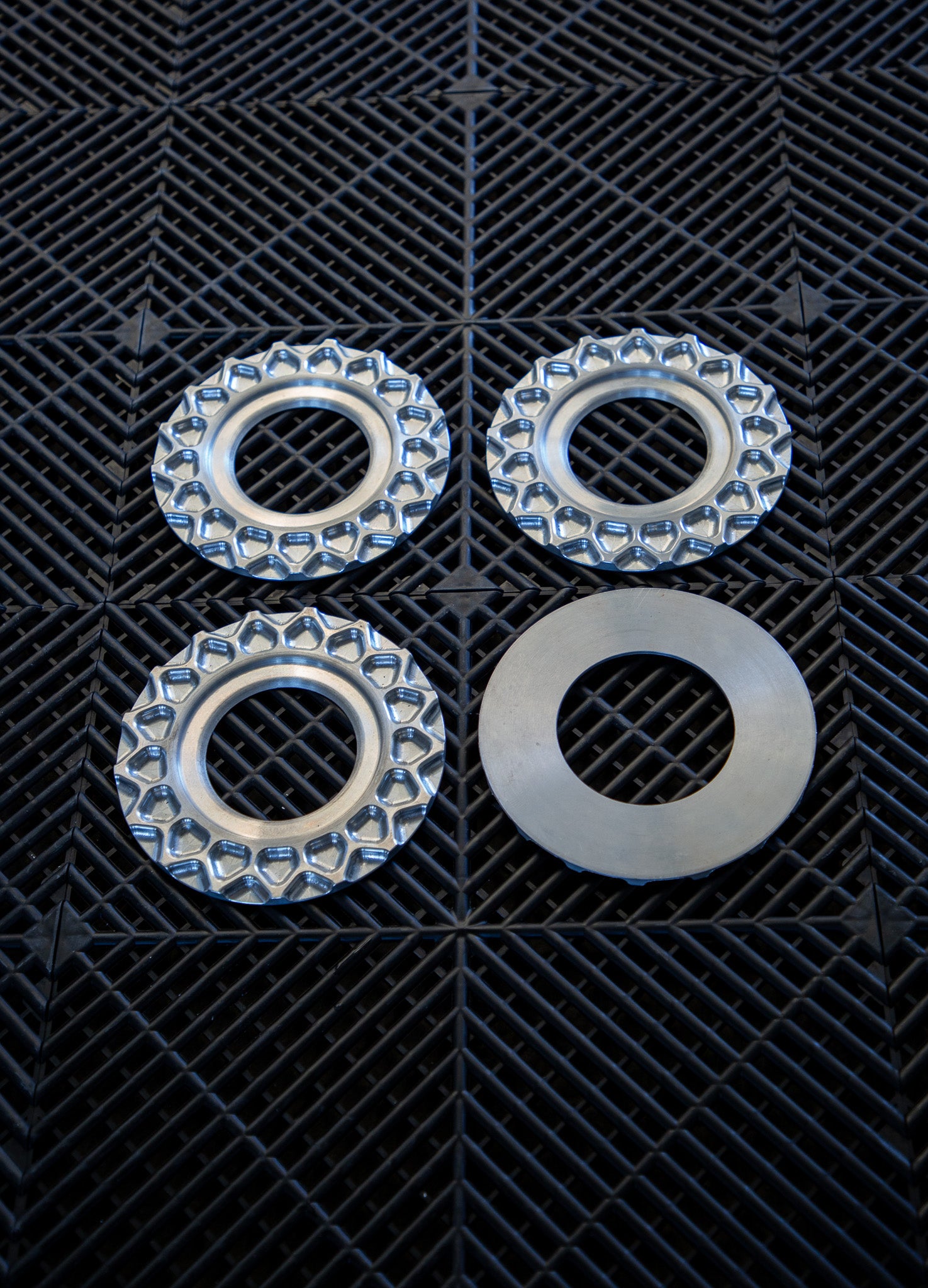 Our billet aftermarket BBS RS waffle plates are a direct replacement for those old bent and or corroded factory waffle plates. These will come in a raw machine finish. You have the choice of the larger waffle plate for 16 and 17 inch BBS RS and then the harder to find replacement smaller 15 inch waffle for the BBS RS.